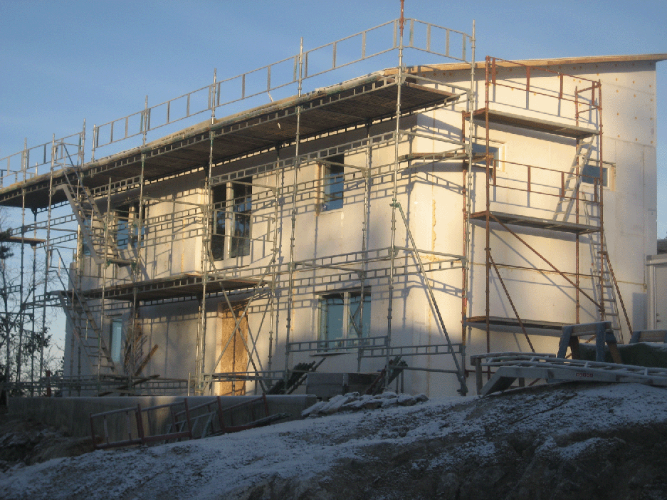 termicznych w scianach i fundamentach. Tynkowana fasada.