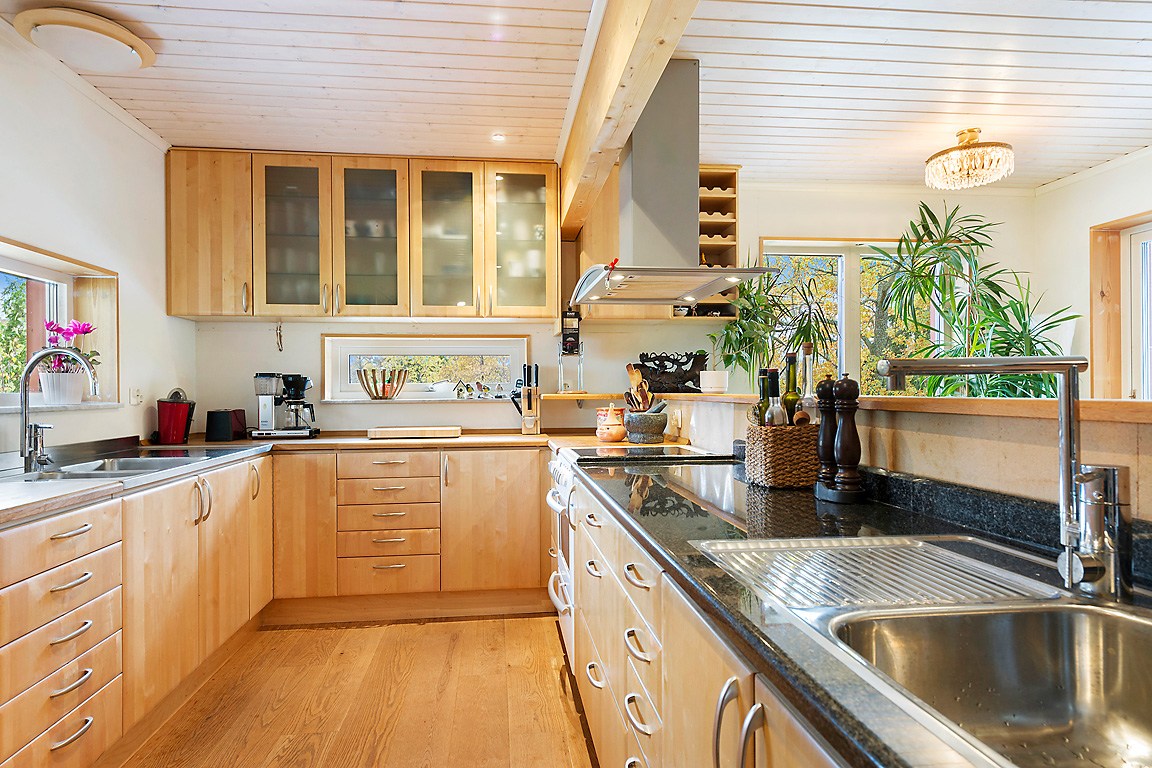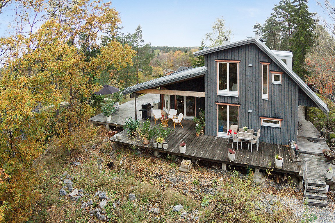Den putsade fasaden ger villan underhållsfri yta och brandskydd.